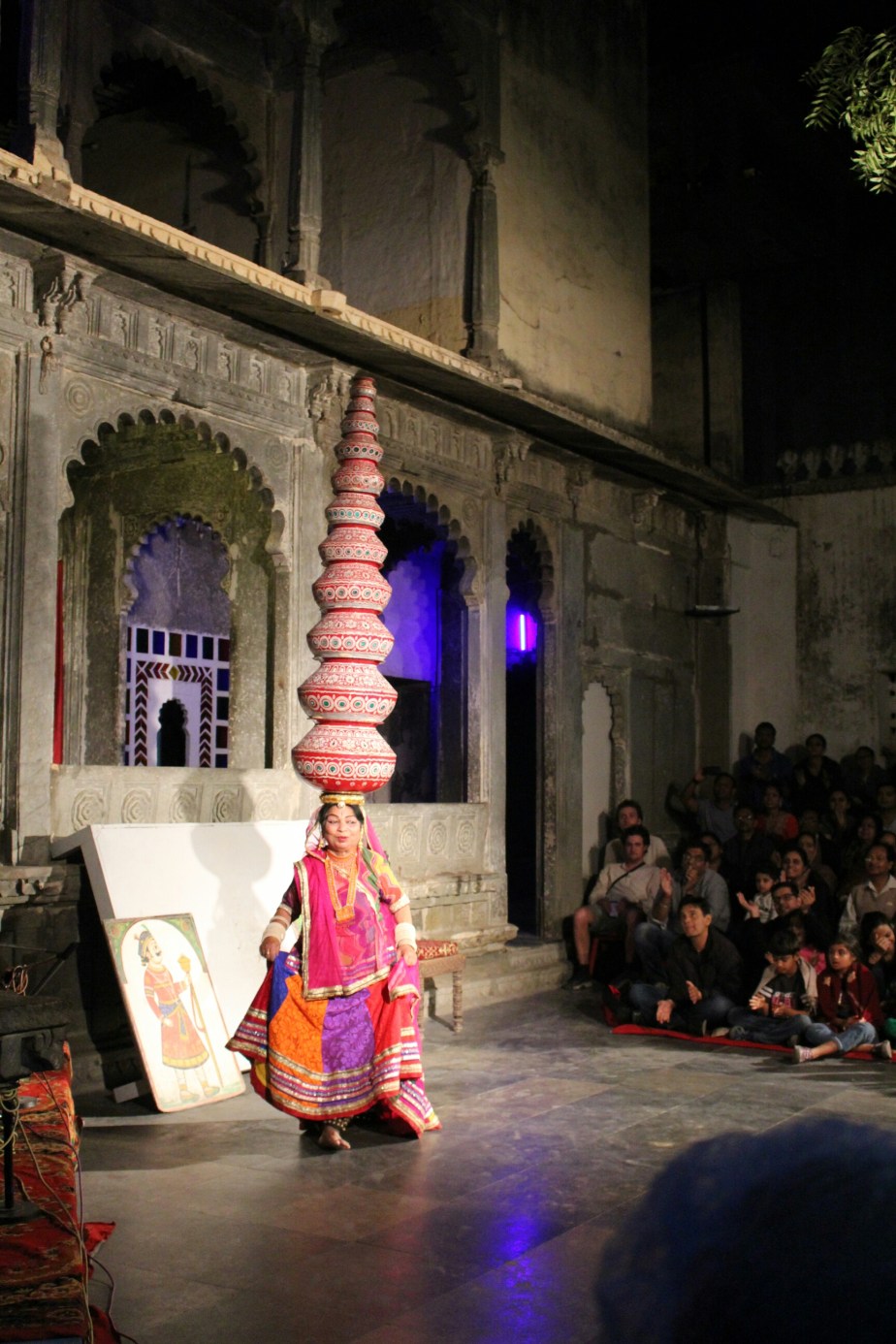 we went to a traditional indian dance festival across from where we were staying at cultral museum it cost 100rp and this lady was a belly dancer and slowly added all these pots 1 by 1 until she had this on her head ,she was 70 years old and more active than me
