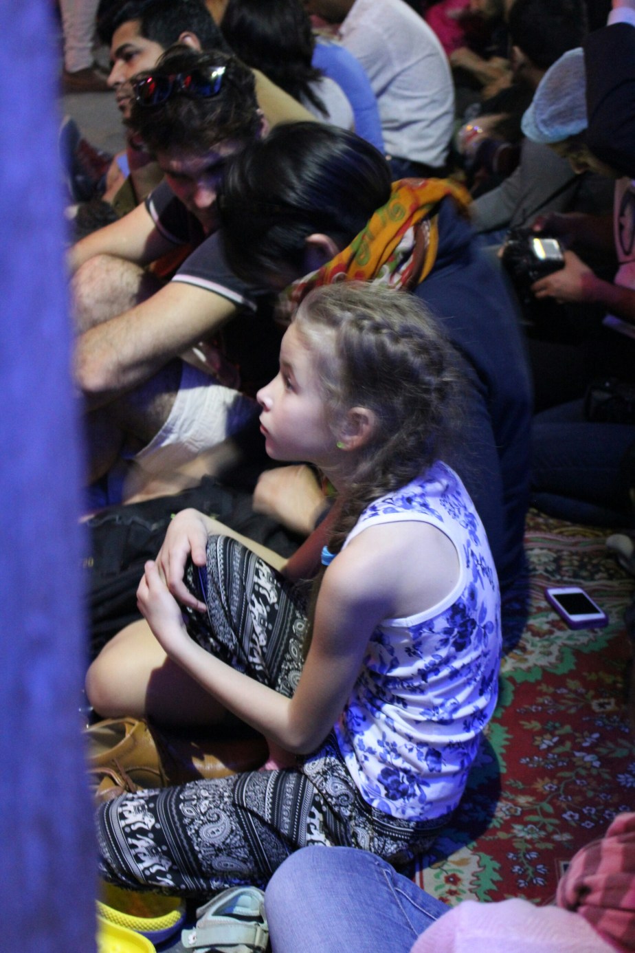 Molly sat and never moved for a hour as there was fire dancers and puppet show aswell
